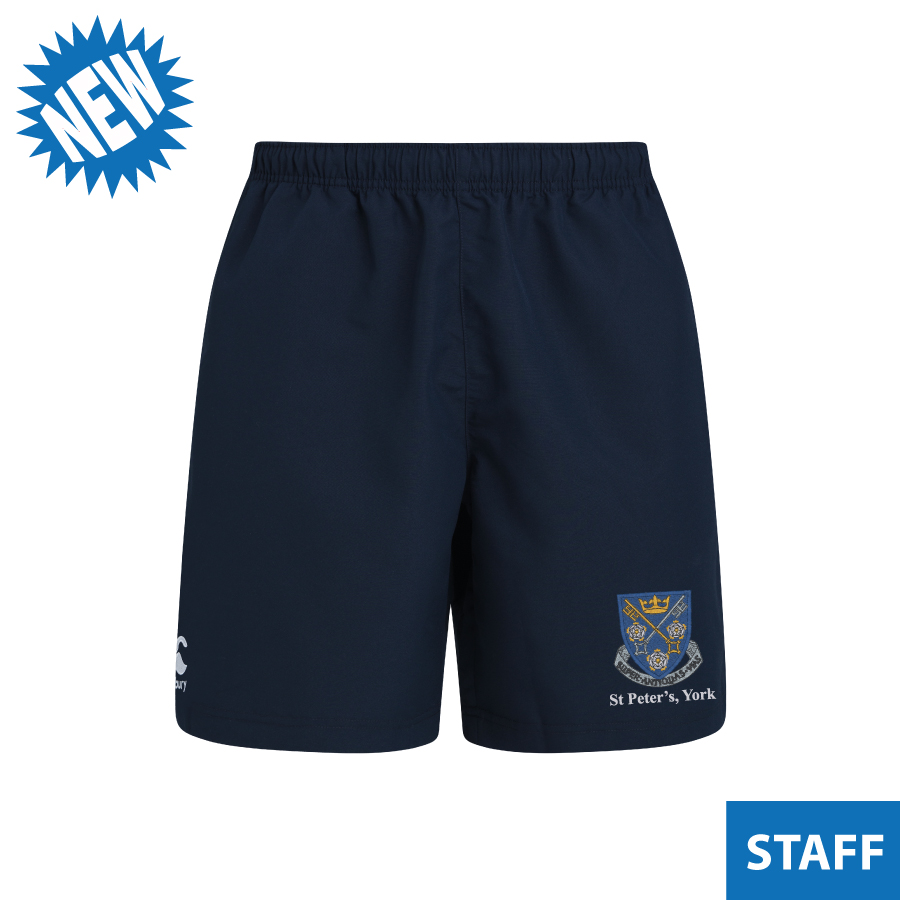 Canterbury Club Shorts Navy, with St Peter’s Crest left Leg. Durable, lightweight and a great all round fit! The Club Short has been developed in the gym with players to make sure it’s up to the task of supporting every player in their workout. Using a lightweight woven fabric for maximum durability it also includes a small stretch insert to maximise freedom of movement.