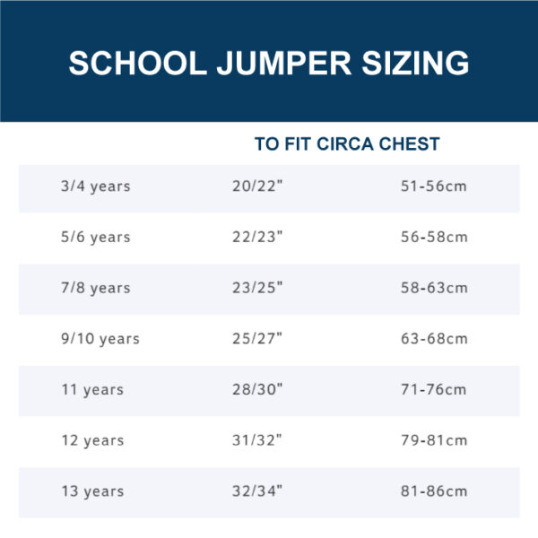 Add to compareTerrington Hall School V-neck Navy Jumper with Gold Stripes on neck — made from cotton, blended with acrylic and nylon, which enhances colour, maintains shape and increases durability. It can be easily cleaned by machine washing and is suitable to be cool tumble dried. Regular fit/elastane in cuff and welts helps retain shape/soft and durable low pill yarn/low maintenance – can be cool tumble dried/40 degree wash. PLEASE ALWAYS CHECK THE SIZE GUIDE ON THIS PAGE